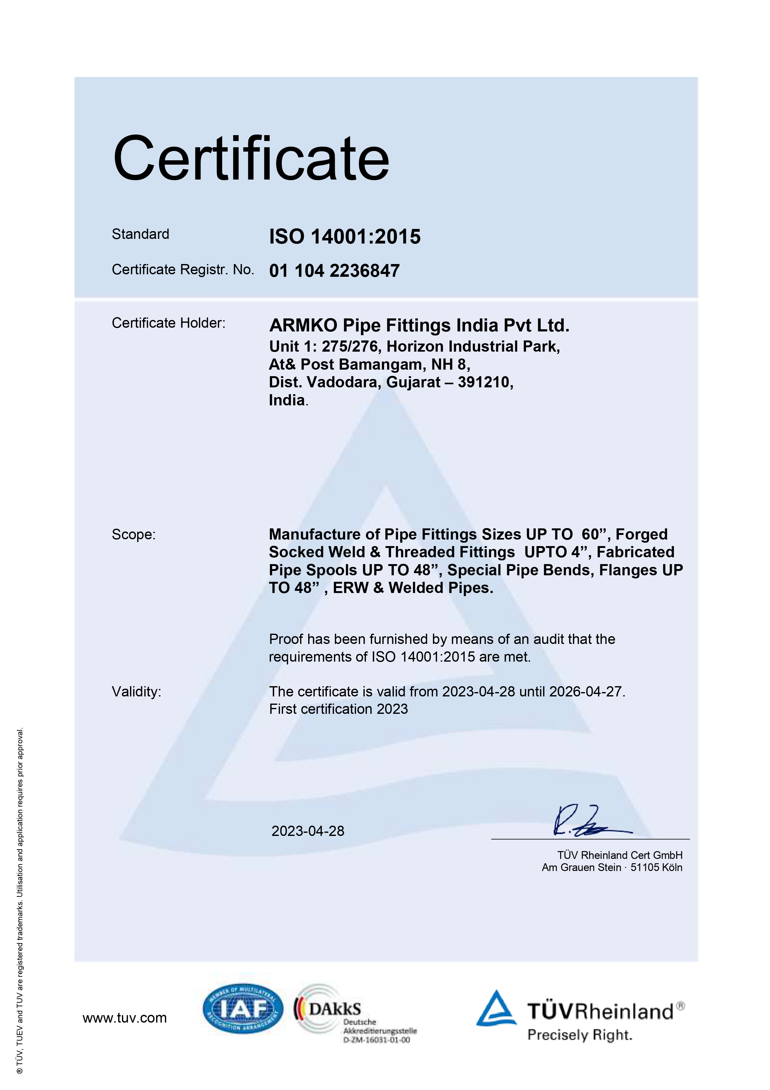 ISO 14001 Certificate