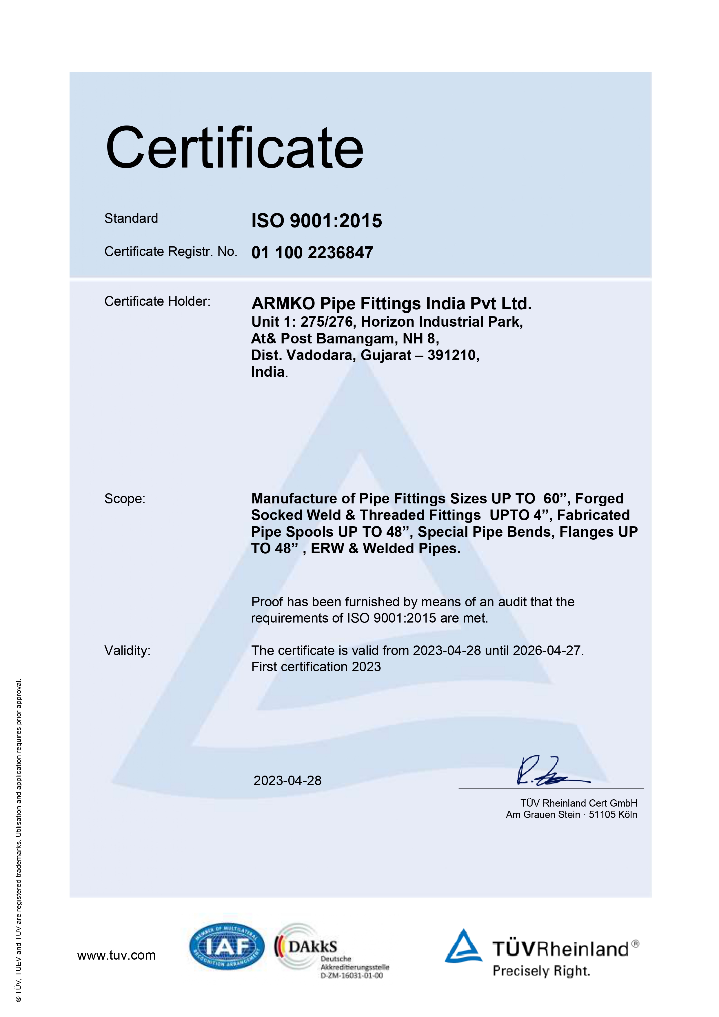 ISO 9001 Certificate